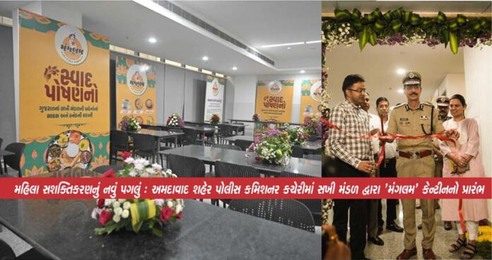 અમદાવાદ : અમદાવાદ શહેર પોલીસ કમિશનરની નવનિર્મિત કચેરી ખાતે સખી મંડળ દ્વારા સંચાલિત ‘મંગલમ’ કેન્ટીનનો શુભારંભ કરવામાં આવ્યો છે. આ કેન્ટીન મહિલા સશક્તિકરણ અને આત્મનિર્ભર ભારત અભિયાનને વેગ આપશે. કેન્ટીનના ઉદ્ઘાટન પ્રસંગે અમદાવાદ શહેર પોલીસ કમિશનર જી.એસ. મલિક દ્વારા ખાસ ઉપસ્થિત રહ્યા હતા. તેમણે સખી મંડળની બહેનોને પ્રોત્સાહન આપ્યું હતું.