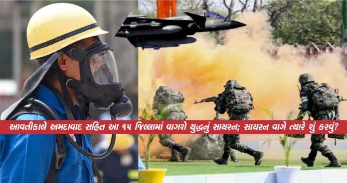 અમદાવાદ : દેશભરમાં આવતી કાલે મોકડ્રિલનું આયોજન કરવામાં આવ્યું છે. જો 7 મેએ અચાનક કોઈ ભારે અને ડરામણો અવાજ સંભળાય તો ડરશો નહીં. આ કોઈ ઈમરજન્સી સ્થિતિ નહીં, પરંતુ એક મોકડ્રીલ એટલે કે યુદ્ધ જેવી સ્થિતિની તૈયારીનો અભ્યાસ છે. આ દરમિયાન ‘યુદ્ધવાળું સાયરન’ વાગશે, જેથી લોકોને જણાવી શકાય કે યુદ્ધ કે હવાઈ હુમલા જેવી સ્થિતિમાં શું કરવાનું હોય છે?