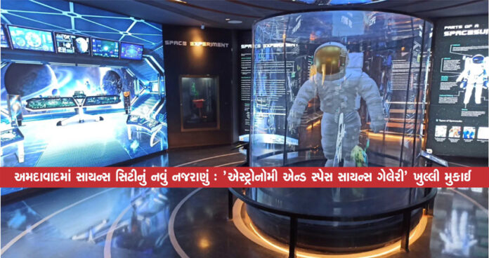 ગુજરાત સરકારના વિજ્ઞાન અને પ્રોદ્યોગિકી વિભાગ હેઠળ કાર્યરત સાયન્સ સિટી, અમદાવાદમાં સૌરમંડળની દિવ્ય રચના ઉપર આધારિત એક નવીનતમ ગેલેરી ‘એસ્ટ્રોનોમી એન્ડ સ્પેસ સાયન્સ ગેલેરી’ 15 મે 2025થી મુલાકાતીઓ માટે ખુલ્લી મૂકવામાં આવશે. આ ગેલેરી એક અદ્ભુત શૈક્ષણિક અને માહિતીસભર બની રહેશે.નોંધનીય છે કે, કુલ 12,797 ચોરસ મીટરના વિસ્તારમાં આવેલી આ ગેલેરીમાં મધ્યમાં સૂર્યનું પ્રતિનિધિત્વ કરતો ત્રણ માળ જેટલો ઊંચો વિશાળ ગ્લોબ આવેલો છે, જેની ફરતે અન્ય ગ્રહોની ગોઠવણ પણ જોઈ શકાય છે. ત્રણ માળમાં બનેલી આ ગેલેરીમાં છ મુખ્ય વિભાગો આવેલા છે. આ સાથે ‘ફંડામેન્ટલ્સ એન્ડ હિસ્ટ્રી’ વિભાગમાં 47 એક્ઝિબિટ્સ મૂકવામાં આવ્યા છે, જે એસ્ટ્રોનોમીના મૂળ સિદ્ધાંતો અને તેના ઇતિહાસની માહિતી આપે છે.
