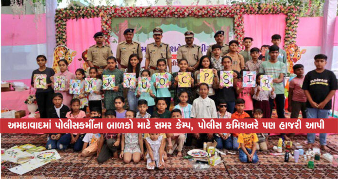 અમદાવાદ : દર વર્ષે ગુજરાત પોલીસ દ્વારા પોલીસ પરિવારના બાળકો માટે સમર કેમ્પ યોજાય છે. ઉનાળા વેકેશન દરમિયાન બાળકોમાં કૌશલ્યનો વિકાસ થાય તે હેતુથી આયોજન કરવામાં આવે છે. અમદાવાદ શહેરની 15 પોલીસ લાઇન ખાતે સમર કેમ્પનું આયોજન કરાયું છે. સમર કેમ્પમાં ગત વર્ષે 600 બાળકોએ ભાગ લીધો હતો.