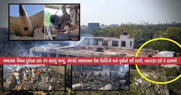 અમદાવાદ વિમાન દુર્ઘટના બાદ તંત્ર સફાળું જાગ્યું, એરપોર્ટ આસપાસના ઉંચા બિલ્ડિંગો અને વૃક્ષોનો સર્વે કરાશે, નડતરરૂપ હશે તે હટાવાશે