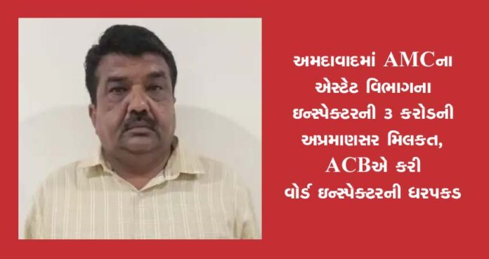અમદાવાદ : અમદાવાદ મ્યુનિસિપલ કોર્પોરેશનના એસ્ટેટ વિભાગમાં ઇન્સ્પેક્ટર તરીકે ફરજ બજાવતા જીગ્નેશ શાહની એન્ટીકરપ્શન બ્યુરો (ACB) દ્વારા ધરપકડ કરવામાં આવી છે. વોર્ડ ઇન્સ્પેક્ટર જીગ્નેશ શાહ દ્વારા તેમની નોકરીના સમયગાળા દરમિયાન અપ્રમાણસર મિલકતો વસાવી હોવા અંગેની ફરિયાદ ACB ને મળી હતી. જે અંગે તપાસ કરતા 102 ટકા વધુ જેટલી અપ્રમાણસર મિલકતો વસાવી હોવા અંગેનું જાણવા મળતા ACBએ ગુનો નોંધીને તેમની ધરપકડ કરી છે.