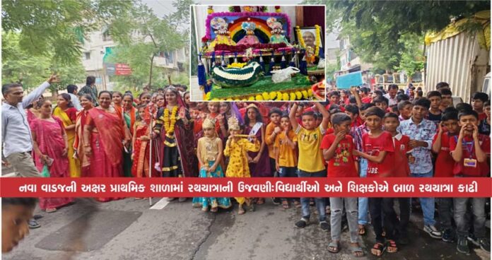 પ્રાપ્ત વિગતો મુજબ, નવા વાડજ વિસ્તારમાં આવેલ અક્ષર પ્રાથમિક શાળા દ્વારા આજે તા. 26/6/25 ને ગુરુવારે સવારે 8 થી 11 દરમિયાન ભગવાન જગન્નાથ ભગવાનની બાળ રથયાત્રાનું આયોજન કરવામાં આવ્યું હતું, શાળા દ્વારા છેલ્લા 16 વર્ષથી સતત આ બાળ રથયાત્રાનું આયોજન કરવામાં આવે છે. રથમાં ભગવાન જગન્નાથ, બલભદ્ર અને સુભદ્રાની મૂર્તિઓની સ્થાપના કરવામાં આવી હતી. શાળાના તમામ વિદ્યાર્થીઓ, શિક્ષકો અને કર્મચારીઓએ ઉત્સાહપૂર્વક ભાગ લીધો. ભજન-કીર્તન સાથે શાળા પરિસરમાં ધાર્મિક વાતાવરણ સર્જાયું હતું.