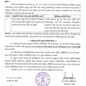 મુસાફરોને સલાહ આપવામાં આવે છે કે તેઓ તે મુજબ તેમની મુસાફરીનું આયોજન કરે અને ભીડને ટાળવા માટે વૈકલ્પિક રસ્તાઓનો ઉપયોગ કરે. ઇમરજન્સી વાહનો અને આવશ્યક સેવાઓને નિયુક્ત માર્ગો દ્વારા મંજૂરી આપવામાં આવશે.આ નિયંત્રણો 10 નવેમ્બર, 2025 ના રોજ સવારે 9:00 થી સાંજના 17:00 વાગ્યા સુધી અમલી રહેશે.