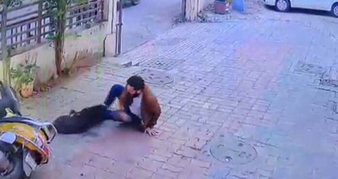 શહેરના શારદા મંદિર રોડ પર આવેલા એક PGના યુવક પર શ્વાને હુમલો કર્યો હોવાના સીસીટીવી ફૂટેજ વાઇરલ થયા છે. વીડિયોમાં જોવા મળે છે કે, યુવક જ્યારે વ્હીકલ પાર્ક કરવા જાય છે, ત્યારે અચાનક શ્વાન ત્યાં આવીને યુવક પર હુમલો કરે છે અને પગના ભાગે કરડવા લાગે છે. આ દરમિયાન એક વ્યક્તિ યુવકને બચાવવા દોડી આવે છે.