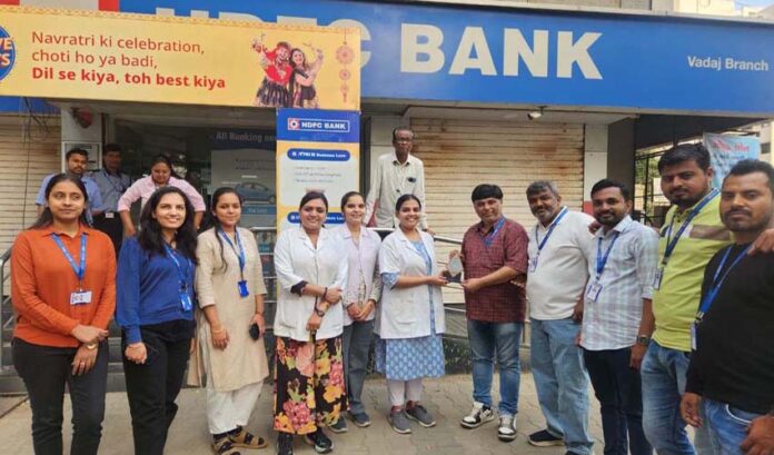 પ્રાપ્ત વિગતો મુજબ, નવા વાડજમાં મિર્ચી મેદાનમાં આવેલ HDFC બેંક બ્રાન્ચ દ્વારા રક્તદાન કેમ્પનું આયોજન કરવામાં આવ્યું હતું.આ કેમ્પ ગત તા-29-11-2025 ને શનિવારે સવારે 9 થી બપોરે 4 વાગ્યા સુધી યોજાયો હતો. જેમાં મોટી સંખ્યામાં સ્થાનિકો અને યુવાનોએ ઉત્સાહભેર ભાગ લીધો હતો અને રક્તદાન કર્યું હતું.