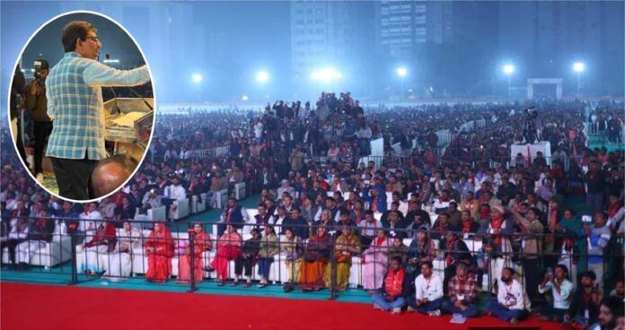 ગાંધીનગર : ગુજરાતના ઈતિહાસમાં પહેલીવાર અડધી રાતે કોઈ સમાજનું સંમેલન મળ્યું હોય તેવી ઘટના બની છે. ગુજરાત ક્ષત્રિય ઠાકોર સમાજમાં યુવાશક્તિને જાગૃત કરવા, વ્યસનમુક્તિ, રોજગાર, શિક્ષણ અને સમાજના વિકાસ જેવા મુદ્દાઓ પર ચિંતન કરવા માટે રામકથા મેદાનમાં ‘અભ્યુદય મહાસંમેલન’નું આયોજન કરવામાં આવ્યું હતું. આ સંમેલનમાં અડધી રાત્રે 3 વાગ્યા પહેલાથી જ હજારોની સંખ્યામાં સમાજના લોકો એકત્ર થયા હતા અને સંમેલનના મુખ્ય એજન્ડા સમાજની એક્તા અને શિક્ષણને લઈને જાગૃતતાને સમર્થન આપ્યુ હતું.