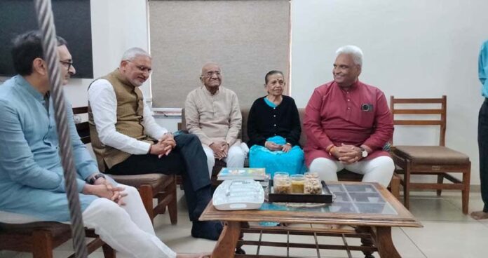 અમદાવાદ : ગુજરાતી સાહિત્ય જગતના મોભી અને પીઢ હાસ્યલેખક શ્રી રતિલાલ બોરીસાગરને ભારત સરકાર દ્વારા પ્રતિષ્ઠિત ‘પદ્મશ્રી’ પુરસ્કાર એનાયત કરવાની જાહેરાત કરવામાં આવી છે. સાહિત્ય અને શિક્ષણ ક્ષેત્રે તેમના અમૂલ્ય યોગદાન બદલ મળેલું આ સન્માન સમગ્ર ગુજરાત અને વિશેષતઃ નારણપુરા વિસ્તાર માટે ગૌરવની બાબત છે. આ આનંદના અવસરે ગુજરાત ભાજપ પ્રદેશ અધ્યક્ષ સહિતના શીર્ષ નેતૃત્વએ શ્રી બોરીસાગરના નિવાસસ્થાને રૂબરૂ મુલાકાત લઇ અભિનંદન પાઠવ્યા હતા.