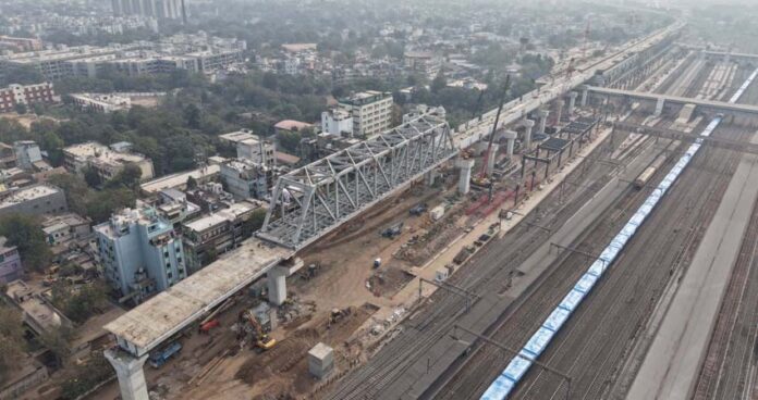 પ્રાપ્ત રિપોર્ટ મુજબ, અમદાવાદમાં કાલુપુર અને શાહપુર મેટ્રો સ્ટેશન વચ્ચે કાર્યરત અંડરગ્રાઉન્ડ મેટ્રો ટનલની બરાબર ઉપર 100 મીટર લાંબો ‘મેક ઈન ઈન્ડિયા’ સ્ટીલ બ્રિજ સફળતાપૂર્વક પૂર્ણ કરવામાં આવ્યો છે.બુલેટ ટ્રેનનું વાયડક્ટ સ્પાન-બાય-સ્પાન સ્ટ્રક્ચર્સની મદદથી બનાવવામાં આવી રહ્યું છે, જેમાં સ્પાન્સ 30થી 50 મીટર સુધીના છે. જોકે, આ લાઇન કાલુપુર અને શાહપુર મેટ્રો સ્ટેશન વચ્ચે જોડાતા અંડરગ્રાઉન્ડ મેટ્રો ટનલ ઉપરથી પસાર થાય છે. બુલેટ ટ્રેનના સ્ટ્રક્ચરનો કોઈપણ લોડ મેટ્રો ટનલ પર ન પહોંચે તે સુનિશ્ચિત કરવા માટે ફાઉન્ડેશન્સ ટનલથી દૂર રાખવામાં આવ્યા હતા. આ માટે સ્પાન લાંબી કરીને લગભગ 100 મીટર કરવાની જરૂર પડી હતી.