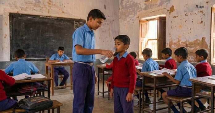 પ્રાપ્ત રિપોર્ટ મુજબ, મણિનગર વિસ્તારમાં આવેલી દૂર્ગા સ્કૂલમાં રિસેસના સમયે એક વિદ્યાર્થીએ તેના મિત્રની બોટલમાં કેમિકલની ગોળીઓ ભેળવી દીધી હતી. જ્યારે બીજો વિદ્યાર્થી પાણી પીવા ગયો ત્યારે તેને વિચિત્ર ગંધ આવી હતી. તેણે અન્ય મિત્રોને પણ પાણી સૂંઘાડ્યું હતું, પરંતુ થોડું પાણી પી લેતા તેની તબિયત બગડી હતી અને તે બેભાન જેવી સ્થિતિમાં આવી ગયો હતો.
