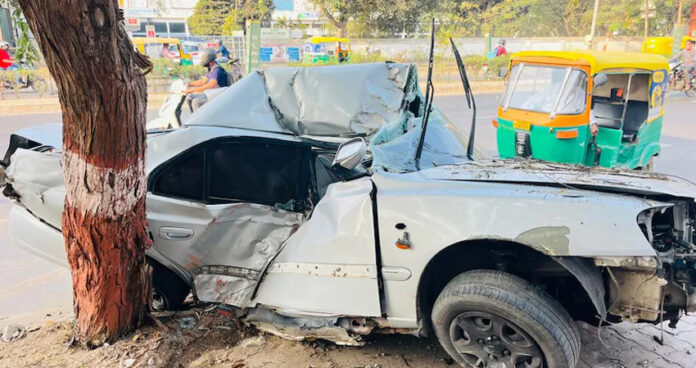 પ્રાપ્ત રિપોર્ટ મુજબ, ગાંધીનગરના વાવોલમાં રહેતો આકાશ ગોસ્વામી નામનો યુવક ચાંગોદરમાં આવેલી એક ખાનગી કંપનીમાં નોકરી કરે છે. આકાશની પત્ની બારેજડી ખાતે પિયરમાં ગઈ હતી. 12 ફેબ્રુઆરીના રોજ આકાશ તેના ઘરેથી પિયર પત્નીને લેવા જઈ રહ્યો હતો. આકાશ પૂર ઝડપે એસન્ટ કાર લઈને વટવા જીઆઇડીસી રોડ પરથી જઈ રહ્યો હતો. આ દરમિયાન સ્ટીયરિંગ પરનો કાબૂ ગુમાવતાં ગાડી ઝાડ સાથે અથડાઈ હતી.