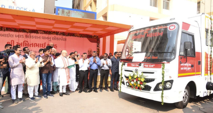 અમદાવાદ : ગુજરાત પ્રવાસે આવેલા કેન્દ્રીય ગૃહ અને સહકાર મંત્રી અમિતભાઈ શાહ (Amit Shah) આજે અમદાવાદ (Ahmedabad) ની જનતાને આરોગ્ય ક્ષેત્રે એક મહત્વની ભેટ આપી છે. અમદાવાદની GMERS મેડિકલ કોલેજ સંલગ્ન સોલા સિવિલ હોસ્પિટલ ખાતે અમિતભાઈ શાહના હસ્તે અત્યાધુનિક મોબાઈલ બ્લડ કલેક્શન વાનનું લોકાર્પણ કરવામાં આવ્યું છે. આ સુવિધા કાર્યરત થવાથી અમદાવાદ અને આસપાસના વિસ્તારના દર્દીઓ માટે લોહીની ઉપલબ્ધતા વધુ સરળ બનશે.