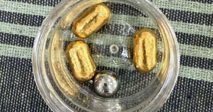 તપાસમાં જાણવા મળ્યું કે, રિકવર કરાયેલી વસ્તુઓમાંથી 3 પીળા રંગની નળાકાર કેપ્સ્યુલ્સમાં 24 કેરેટ શુદ્ધ સોનું હતું, જેનું કુલ વજન 135.200 ગ્રામ નોંધાયું છે. જ્યારે ચોથી વસ્તુ લોખંડનો ગોળો હોવાનું બહાર આવ્યું હતું. જપ્ત કરાયેલા આ સોનાની બજાર કિંમત અંદાજે રૂ. 21,89,564/- આંકવામાં આવી છે. એર અરેબિયાની ફ્લાઈટમાં આવેલા મુસાફરની ધરપકડ કરી વધુ તપાસ હાથ ધરી છે.