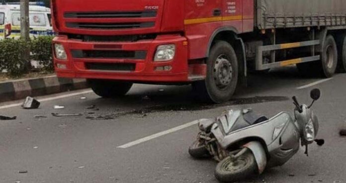 અમદાવાદમાં વધુ એક અકસ્માત, કન્ટેઇનરની અડફેટે મોપેડ ચાલક મહિલાનું ઘટનાસ્થળે જ મોત
