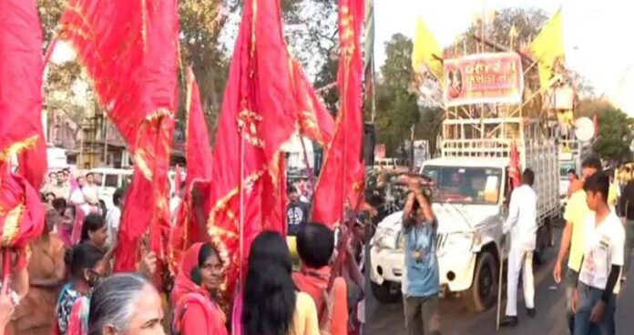 અમદાવાદ : અમદાવાદના નગરદેવી ભદ્રકાળી માતાજીની આજે એટલે કે 26 ફેબ્રુઆરીના રોજ સાવારે ભવ્ય નગરયાત્રા નીકળી. મેયર અને સ્ટેન્ડિંગ કમિટી ચેરમેન દેવાંગ દાણીએ પહિંદ વિધિ કરી કરી નગરયાત્રાનું પ્રસ્થાન કરાવ્યું. આ નગરયાત્રામાં માતાજીનો રથ, નાસિક ઢોલ, અખાડાના કલાકારો, ભજન મંડળીઓ અને મોટી સંખ્યામાં વાહનોનો કાફલો જોડાયો.
