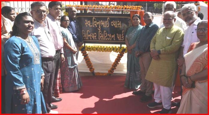 અમદાવાદ : શહેરના નવા વાડજ વોર્ડમાં નવા તૈયાર કરાયેલા સિનિયર સિટિઝન પાર્કને શહેરના મેયર શ્રીમતી પ્રતિભાબેન જૈનના વરદ હસ્તે “સ્વ. વિનુભાઇ વ્યાસ સિનિયર સિટિઝન પાર્ક” નામ આપવામાં આવ્યું છે.