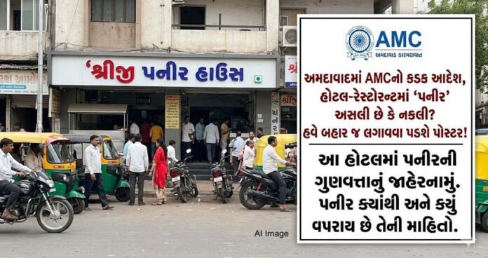 હવેથી દરેક ફૂડ એકમે એ સ્પષ્ટ કરવું પડશે કે તેઓ જે પનીર વાપરી રહ્યા છે તે શુદ્ધ ‘મિલ્ક પનીર’ છે કે પછી વનસ્પતિ તેલમાંથી બનેલું ‘એનાલોગ પનીર’ તેમજ મેનૂ કાર્ડમાં અથવા ડિસ્પ્લે બોર્ડ પર ગ્રાહકોને દેખાય તે રીતે આ માહિતી ફરજિયાત દર્શાવવી પડશે. નિયમોનું ઉલ્લંઘન કરનારા સામે કાર્યવાહી કરવામાં આવશે. મળતી માહિતી મુજબ, અમદાવાદ મહાનગરપાલિકાના આરોગ્ય વિભાગ દ્વારા એએમસીમાં રજીસ્ટર 15000 કરતાં વધુ હોટલ સંચાલકો, રેસ્ટોરન્ટ માલિકો અને ફૂડ સર્વિસ પ્રોવાઈડરોને ઈ-મેલ દ્વારા કડક સૂચના આપવામાં આવી છે. હવેથી દરેક ફૂડ એકમેએ સ્પષ્ટ કરવું પડશે કે તેઓ જે પનીર વાપરી રહ્યા છે તે શુદ્ધ ‘મિલ્ક પનીર’ છે કે પછી વનસ્પતિ તેલમાંથી બનેલું ‘એનાલોગ પનીર’.નિયમ મુજબ, હવે દરેક ખાદ્ય એકમોએ પોતાના મેનૂ કાર્ડમાં અથવા ડિસ્પ્લે બોર્ડ પર ગ્રાહકોને દેખાય તે રીતે આ માહિતી ફરજિયાત દર્શાવવી પડશે.
