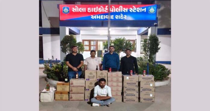 પ્રાપ્ત રિપોર્ટ મુજબ, સોલા હાઈકોર્ટ પોલીસ સ્ટેશનના પી.આઈ. કે.એન. ભુકણના માર્ગદર્શન હેઠળ જ્યારે પોલીસ ટીમ પેટ્રોલીંગમાં હતી, ત્યારે કોન્સ્ટેબલ રમેશકુમાર ભુપતભાઈ અને રાકેશભાઈ આલાભાઈને ચોક્કસ બાતમી મળી હતી. આ બાતમીના આધારે ચાંદલોડીયા રામબાગ આવાસ ઔડાના મકાન નંબર 16/500 ખાતે દરોડો પાડવામાં આવ્યો હતો.પોલીસે સ્થળ પરથી અલ્પેશ ઉર્ફે ભુટ્ટો ખોડાજી પરમાર (ઉં.વ. 30, રહે. સાબરમતી) નામના ઇસમને ઝડપી પાડ્યો છે.પોલીસે સ્થળ પરથી વિવિધ બ્રાન્ડની વિદેશી દારૂની બોટલો અને બીયરના ટીન મળી કુલ 720 નંગ મુદ્દામાલ સાથે કુલ ₹3,06,480/- મુદ્દામાલ જપ્ત કર્યો છે.
