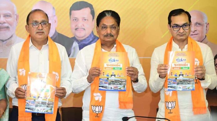 અમદાવાદ : અમદાવાદ શહેરમાં આગામી સ્થાનિક સ્વરાજ્યની ચૂંટણીને ધ્યાનમાં રાખીને ભાજપ દ્વારા પોતાનો ચૂંટણી ઢંઢેરો જાહેર કરવામાં આવ્યો છે. “જન સમર્થન”ના નામે રજૂ કરાયેલા આ સંકલ્પ પત્રને શહેર પ્રભારી ઋષિકેશ પટેલે જાહેર કર્યું હતું. તેમણે જણાવ્યું કે આગામી પાંચ વર્ષ માટે શહેરના સર્વાંગી વિકાસનું સ્પષ્ટ આયોજન તૈયાર કરવામાં આવ્યું છે.