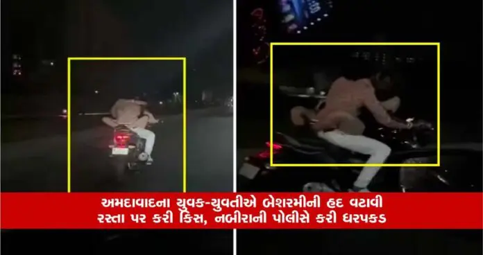 અમદાવાદ : આજકાલના નબીરાઓ બેફામ બની રહ્યાં છે. બેફામ બનેલા નબીરાઓ હવે જાહેરમાં અશ્લીલ હરકતો કરવા લાગ્યા છે. ત્યારે અમદાવાદના નિકોલ હાઈવે પર યુવક-યુવતીએ બેશરમીની હદ વટાવી ચાલુ બાઈક પર ચુંબન કર્યુ હતું. જે વીડિયો સોશિયલ મીડિયા પર વાયરલ થયો હતો. જોકે, ગણતરીના કલાકોમાં અમદાવાદ પોલીસે આ યુવકને ઝડપી પડ્યો છે.