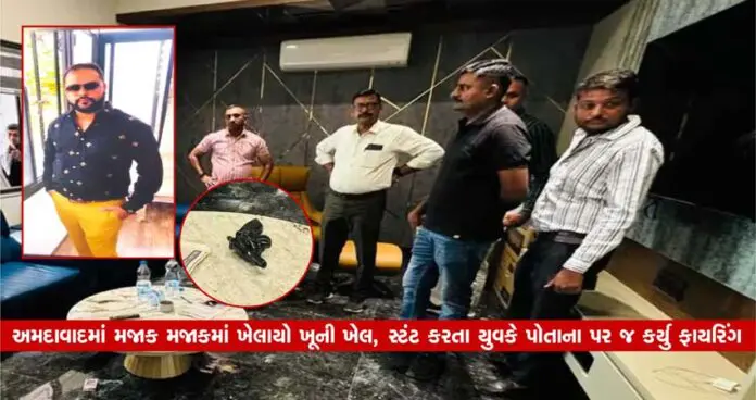 પ્રાપ્ત રિપોર્ટ મુજબ, વેજલપુરની રૂપેશ સોસાયટીમાં આકસ્મિક ફાયરિંગમાં એક યુવકનું મોત નિપજ્યું છે. આ યુવકનું નામ દિગ્વિજયસિંહ રાજપુત ઉર્ફે ભોલો હતું. 36 વર્ષીય યુવકે નશાની હાલતમાં મજાકમાં પોતાના પર જ ગોળી ચલાવી હતી. મૃતક યુવકે જ્યારે ફાયરિંગ કર્યુ ત્યારે તેનો ડ્રાઇવર અને તેની સાથે એક મહિલા મિત્ર પણ સાથે હતી.યુવાને પોતાની લાઇસન્સવાળા વેપનથી મજાકમાં ફાયરિંગ કર્યુ હતુ. આ રિવોલ્વરમાં ત્રણ રાઉન્ડ ખાલી હતા અને ત્યાર બાદના 3 રાઉન્ડ ભરેલા હતા. હાલ વેજલપુર પોલીસે ગુનો નોંધીને વધુ તપાસ હાથ ધરી છે. આ તપાસમાં FSL ની ટીમ પણ કામે લાગી છે.