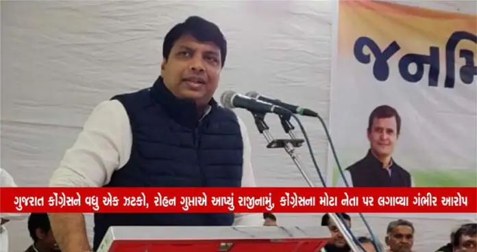 અમદાવાદ : રોહન ગુપ્તાએ કોંગ્રેસમાંથી રાજીનામું આપ્યું છે. પાર્ટીના વરિષ્ઠ નેતાઓ પર ગંભીર આરોપો લગાવ્યા છે. રોહન ગુપ્તાએ અંગત પારિવારીક કારણોને લઈને રાજીનામું આપ્યં છે. નેશનલ સોશલ મીડિયા કો-ઓર્ડિનેટર છે રોહન ગુપ્તા. જો કે હવે રોહન ગુપ્તાએ કોંગ્રેસમાંથી તમામ પદો પરથી આપ્યુ રાજીનામુ આપી દેતા કોંગ્રેસને ખૂબ મોટો ઝટકો મળ્યો છે.