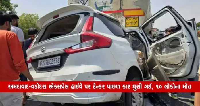 અમદાવાદ-વડોદરા એક્સપ્રેસ હાઈવે પર ટેન્કર પાછળ કાર ઘુસી ગઈ, 10 લોકોના મોત