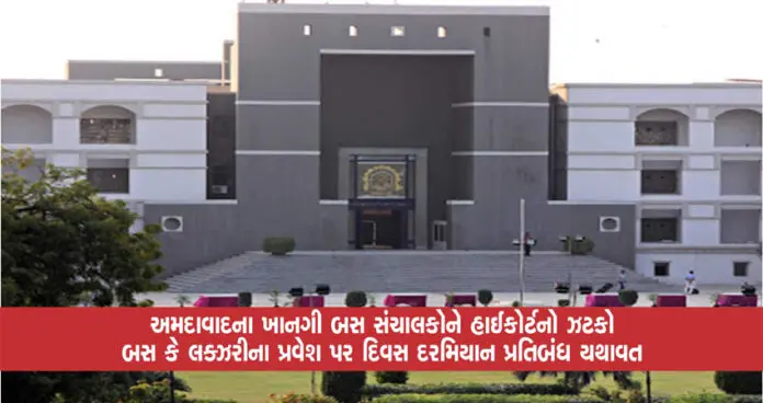અમદાવાદના ખાનગી બસ સંચાલકોને હાઈકોર્ટનો ઝટકો, બસ કે લક્ઝરીના પ્રવેશ પર દિવસ દરમિયાન પ્રતિબંધ યથાવત