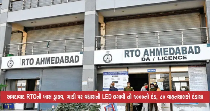 અમદાવાદ RTOની ખાસ ડ્રાઇવ, ગાડી પર વધારાની LED લગાવી તો 1000નો દંડ, 80 વાહનચાલકો દંડાયા