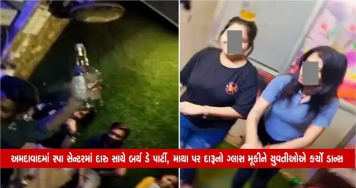 અમદાવાદમાં સ્પા સેન્ટરમાં દારુ સાથે બર્થ ડે પાર્ટી, માથા પર દારૂનો ગ્લાસ મૂકીને યુવતીઓએ કર્યો ડાન્સ