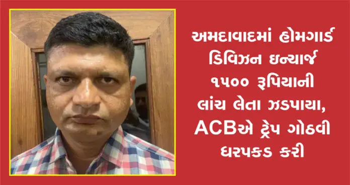 અમદાવાદ : અમદાવાદમાં સિવિલ હોસ્પિટલમાં હોમગાર્ડ જવાનો પાસેથી શિફ્ટ મુજબ નોકરી ફાળવવા માટે નરોડા ડિવિઝન 9 અને સિવિલ હોસ્પિટલના GISF ડિવિઝનના ઇન્ચાર્જે રૂપિયા 1500ની લાંચ માગી હતી. જેથી હોમગાર્ડ જવાનોએ ACBને ફરિયાદ કરતાં ટ્રેપ ગોઠવી ડિવિઝન ઇન્ચાર્જ (પ્લાટુન કમાન્ડન્ટ) મનોજ સોલંકીની ધરપકડ કરી હતી.