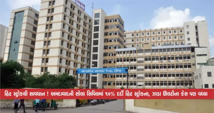 પ્રાપ્ત રિપોર્ટ મુજબ અમદાવાદની સોલા સિવિલ હોસ્પિટલની OPD માં અથવા ઇમરજન્સીમાં જેટલા પણ દર્દીઓ આવે છે. તેના 10% દર્દીઓ ગરમીને કારણે થયેલી તકલીફ માટે સારવાર લેવા પહોંચે છે. મળતી માહિતી અનુસાર, હિલ નેસના અથવા હિટ સ્ટ્રોકના દરરોજ 250-300 દર્દીઓ સોલા સિવિલ હોસ્પિટલમાં સારવાર અર્થે પહોંચે છે. આ ઉપરાંત કાળઝાળ ગરમીમાં વાઇરલ ઇન્ફેક્શનના કેસમાં પણ વધારો થાય છે. કારણ કે, તાપમાનમા સતત વધારો થવાથી કેટલાક લોકોને તેને કારણે શરદી ખાંસી તાવ થાય છે. આ એક વાયરલ ઇન્ફેકશન હોવાથી તેના કેસમાં પણ વધારો થયો છે. ગત એક સપ્તાહ દરમિયાન સોલા સિવિલ હોસ્પિટલમાં વાઇરલ ઇન્ફેક્શનના 1,709 દર્દીઓ નોંધાયા હતા.