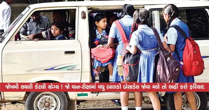 જોખમી સવારી કેટલી યોગ્ય ! જો વાન-રીક્ષામાં વધુ બાળકો બેસાડેલ જોવા મળે તો અહીં કરો ફરિયાદ