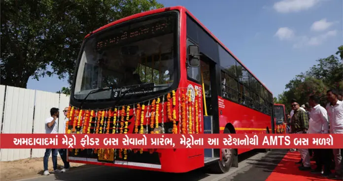 અમદાવાદમાં મેટ્રો સ્ટેશનથી લોકો પોતાના વિસ્તારમાં સરળતાથી જઈ શકે તેના માટે હવે AMTS દ્વારા મેટ્રો ફીડર બસ સેવાની શરૂઆત કરવામાં આવી છે. મેટ્રોના બે મુખ્ય સ્ટેશન થલતેજ અને વસ્ત્રાલથી ફીડર બસ સેવા શરૂ થઈ છે, આ ઉપરાંત સાબરમતી રિવરફ્રન્ટના રૂટની પણ બસ શરૂ થઈ છે. બુધવારે રાજ્યના મુખ્યમંત્રી ભુપેન્દ્ર પટેલ દ્વારા લીલી ઝંડી બતાવી બસોનું પ્રસ્થાન કરાવ્યું હતું. થલતેજ મેટ્રો સ્ટેશનથી એસજી હાઇવેથી પશ્ચિમ તરફ બોપલ, શીલજ, ઘુમા, પ્રહલાદ નગર ઘાટલોડિયા વિસ્તારમાં AMTS બસ જશે. જ્યારે વસ્ત્રાલ મેટ્રો સ્ટેશનથી ઓઢવ, આદિનાથ નગર, સિંગરવા ગામ થઈ અને વસ્ત્રાલ પરત ફરશે.