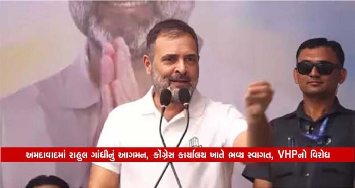 અમદાવાદમાં રાહુલ ગાંધીનું આગમન, કોંગ્રેસ કાર્યાલય ખાતે ભવ્ય સ્વાગત, VHPનો વિરોધ
