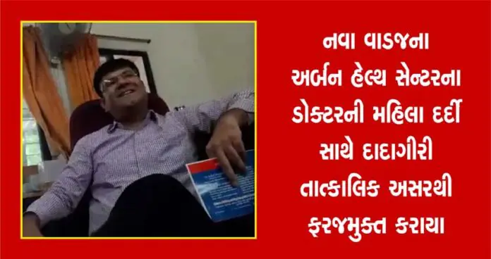 નવા વાડજના અર્બન હેલ્થ સેન્ટરના ડોક્ટરની મહિલા દર્દી સાથે દાદાગીરી, તાત્કાલિક અસરથી ફરજમુક્ત કરાયા