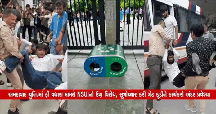 અમદાવાદ યુનિ.માં ફી વધારા મામલે NSUIનો ઉગ્ર વિરોધ, સૂત્રોચ્ચાર કરી ગેટ કૂદીને કાર્યકરો અંદર પ્રવેશ્યા