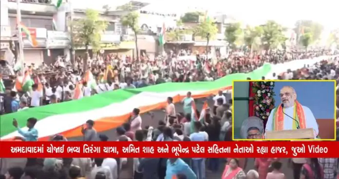 પ્રાપ્ત રિપોર્ટ મુજબ, સ્વતંત્રતા પર્વની ઉજવણી પહેલાં રાજ્યના ચાર મહાનગરોમાં ભવ્ય તિરંગા યાત્રાનું આયોજન કરવામાં આવ્યું છે. આજે 13 ઓગસ્ટના રોજ (મંગળવારે) અમદાવાદના પૂર્વ વિસ્તારમાં વિરાટનગરથી લઈ નિકોલ ખોડિયાર મંદિર સુધી ત્રણ કિલોમીટર લાંબી તિરંગા યાત્રા યોજવામાં આવી હતી. સાંજે 5.20 વાગ્યે કેન્દ્રીય ગૃહ મંત્રી અમિત શાહ અને મુખ્યમંત્રી ભૂપેન્દ્ર પટેલ દ્વારા રાષ્ટ્ર ધ્વજ લહેરાવી તિરંગા યાત્રાની શરૂઆત કરવામાં આવી હતી. જોકે, વિરાટનગર ફુવારા સર્કલથી ચાલુ થયેલી 3 કિમી લાંબી તિરંગા યાત્રા નિકોલ ખોડિયાર મંદિર ખાતે પૂર્ણ થઇ છે. તિરંગા યાત્રામાં કેન્દ્રીય ગૃહ મંત્રી અમિત શાહ બે કિલોમીટર અને મુખ્યમંત્રી ભૂપેન્દ્ર પટેલ ત્રણ કિલોમીટર સુધી યાત્રામાં ચાલતા જોડાયા હતા.