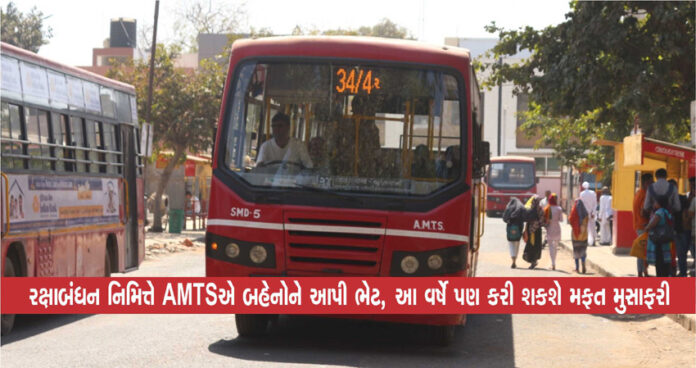 પ્રાપ્ત રિપોર્ટ મુજબ, રક્ષાબંધન તહેવાર નિમિતે AMTSમાં મહિલાઓ માટે મુસાફરી ફ્રી રાખવાનો નિર્ણય લેવાયો છે. પરિણામે 19 ઓગસ્ટ સોમવારના દિવસે મહિલાઓ AMTSમાં ફ્રીમાં મુસાફરી કરી શકશે. એટલે કે, સમગ્ર દિવસ દરમિયાન બહેનો પાસેથી કોઈ ચાર્જ લેવામાં આવશે નહીં.સવારે બસના શરૂઆતથી લઈ રાત્રે બસ બંધ થાય ત્યાં સુધી કોઈ પણ રૂટ અને સ્થળની AMTS બસમાં મહિલાઓને ટિકિટ લેવાની રહેશે નહીં. ગત વર્ષે રક્ષાબંધનમાં 75 હજારથી વધુ મહિલાઓએ મુસાફરી કરી હતી. ત્યારે ચાલુ વર્ષે પણ રક્ષાબંધનના તહેવારમાં મહિલાઓને મફતમાં મુસાફરી કરી શકે તેઓ નિર્ણય લેવામાં આવ્યો હતો.