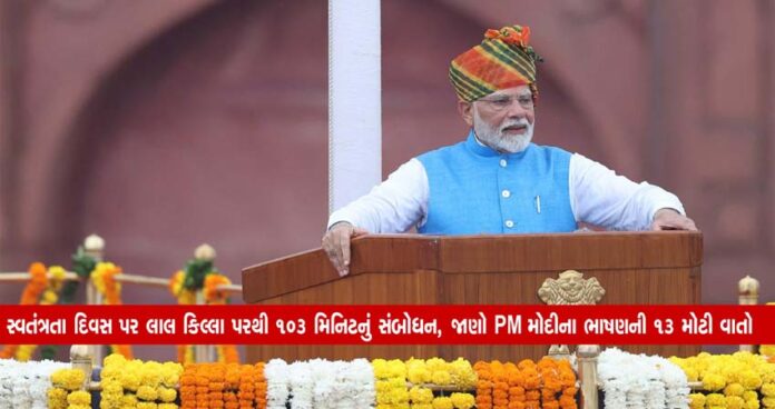 નવી દિલ્હી : સમગ્ર ભારત આજે પોતાનો 78 મો સ્વાતંત્ર્ય દિવસ ઉજવી રહ્યું છે. આ ખાસ દિવસે PM મોદીએ દિલ્હીના લાલ કિલ્લા ઉપર 11મી વખત રાષ્ટ્રધ્વજ ફરકાવ્યો હતો. રાષ્ટ્રધ્વજ ફરકાવ્યા બાદ PM મોદીએ દેશ વાસીઓનું સંબોધન કર્યું હતું. PM મોદીએ મહિલાઓની સુરક્ષાથી લઈને દેશના વિકાસ સુધીના તેમના વિઝનને આગળ ધપાવ્યું. આ પછી રાષ્ટ્રને સંબોધિત કરતી વખતે PM મોદીએ સ્વતંત્રતા સેનાનીઓને યાદ કર્યા.આ બધામાં ખાસ વાત એ છે કે PM મોદીનું આ અત્યાર સુધીનું સૌથી લાંબુ એટલે કે 103 મિનિટનું ભાષણ હતું.