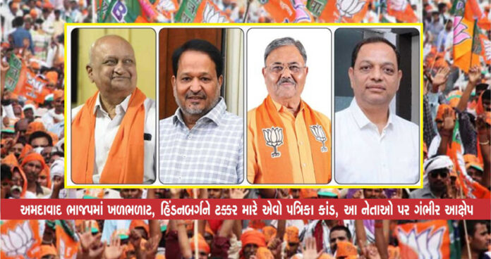 પ્રાપ્ત રિપોર્ટ મુજબ, અમદાવાદના મણિનગરના ભાજપના કાર્યકર્તાનો કથિત પત્રિકા સોશિયલ મીડિયા અને સ્થાનિક ભાજપમાં ફરતો થયો છે. પત્રિકા વાયરલ થયા બાદ અમદાવાદ ભાજપમાં ખળભળાટ મચ્યો છે.મણિનગરના ભાજપ કાર્યકર્તાએ પૂર્વ મનપા પ્રભારી ધર્મેન્દ્ર શાહ અને તેમની નજીકના નેતાઓ પર ગંભીર આરોપો લગાવવામાં આવ્યા છે.ભાજપના ધારાસભ્ય અને નેતાઓના અમદાવાદ મ્યુનિસિપલ કોર્પોરેશનમાં કોન્ટ્રાક્ટ ચાલે છે. કેટલી અને ક્યાં તેમની સંપત્તિ છે તેનું લખાણ પણ પત્રમાં લખવામાં આવ્યું છે.
