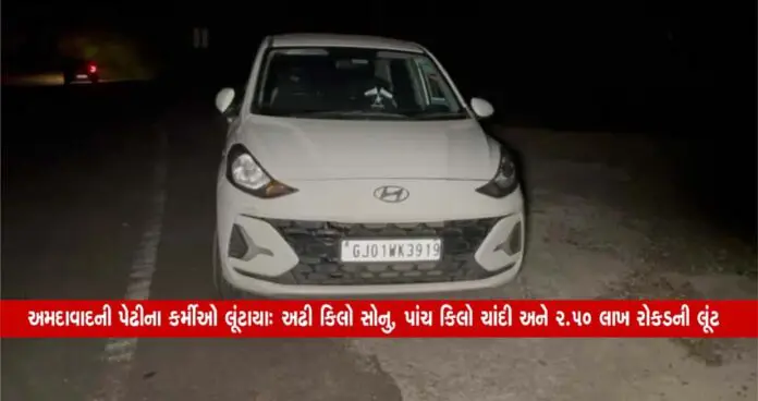 પ્રાપ્ત રિપોર્ટ મુજબ, અમદાવાદના માણેકચોકમાં આવેલી કલા ગોલ્ડ ફેક્ટરીના સેલ્સમેન ધર્મેન્દ્ર જોશી અને ધનરાજ ભાંગડે કુતિયાણા તરફથી પોતાનું ફોર-વ્હીલર લઈ સોમનાથ તરફ જતા હતા એ સમયે બાંટવા-કુતિયાણા રોડ પર પોતાની કારમાં પંચર પડતાં આ બંને સેલ્સમેન ઊભા હતા. ત્યારે અચાનક જ બાઈક પર આવી એક વ્યક્તિએ આ સેલ્સમેન સાથે અપશબ્દો બોલી માથાકૂટ શરૂ કરી હતી. ત્યારે જોતજોતાંમાં અચાનક જ બે અન્ય ઈસમો આવી છરી બતાવી માર મારીને કારમાંથી અઢી કિલો સોનું, પાંચ કિલો ચાંદી અને 2.50 લાખ રોકડ અને સેલ્સમેના મોબાઈલ મળી કુલ 1 કરોડ 15 લાખ 82 હજારનો મુદ્દામાલ લૂંટી ગયા હતા.જે લઈને ચોરો ફરાર થઈ ગયા હતા.