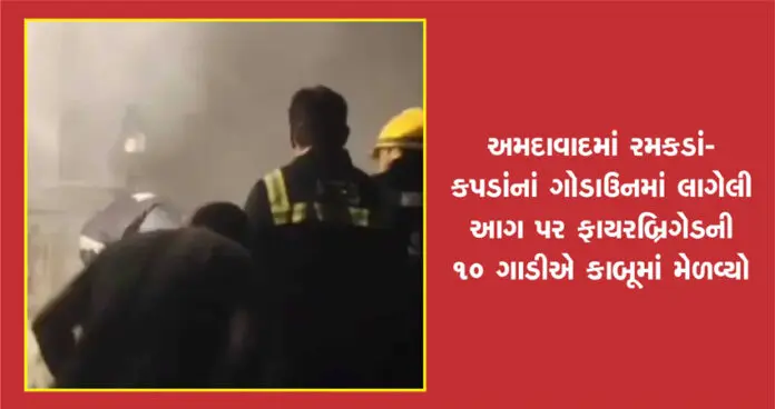 અમદાવાદમાં રમકડાં-કપડાંનાં ગોડાઉનમાં લાગેલી આગ પર ફાયરબ્રિગેડની 10 ગાડીએ કાબૂમાં મેળવ્યો