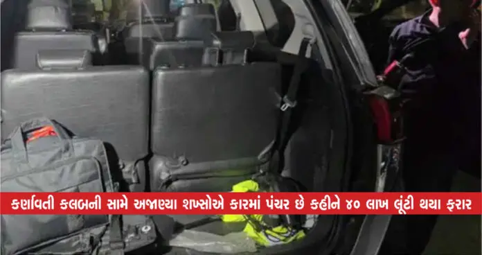 કર્ણાવતી કલબની સામે અજાણ્યા શખ્સોએ કારમાં પંચર છે કહીને 40 લાખ લૂંટી થયા ફરાર