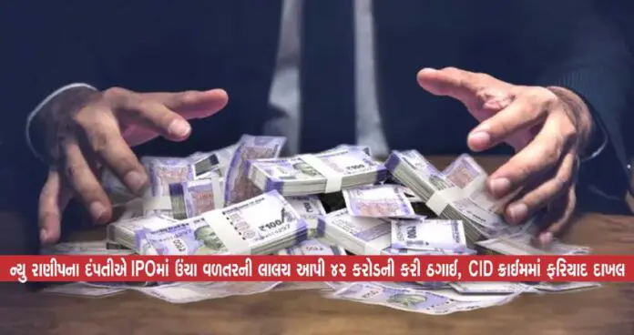 અમદાવાદ : શહેરના ન્યુ રાણીપ વિસ્તારમાં રહેતા અને એક ઇન્વેસ્ટમેન્ટ કંપની ધરાવતા દંપતિએ IPOમાં પ્રતિ માસ નવ ટકા સુધીના વળતરની ખાતરી આપીને અનેક રોકાણકારો સાથે રૂપિયા 42 કરોડની છેતરપિંડી આચરી હોવાની ફરિયાદ CID ક્રાઇમ દ્વારા નોંધવામાં આવી છે.